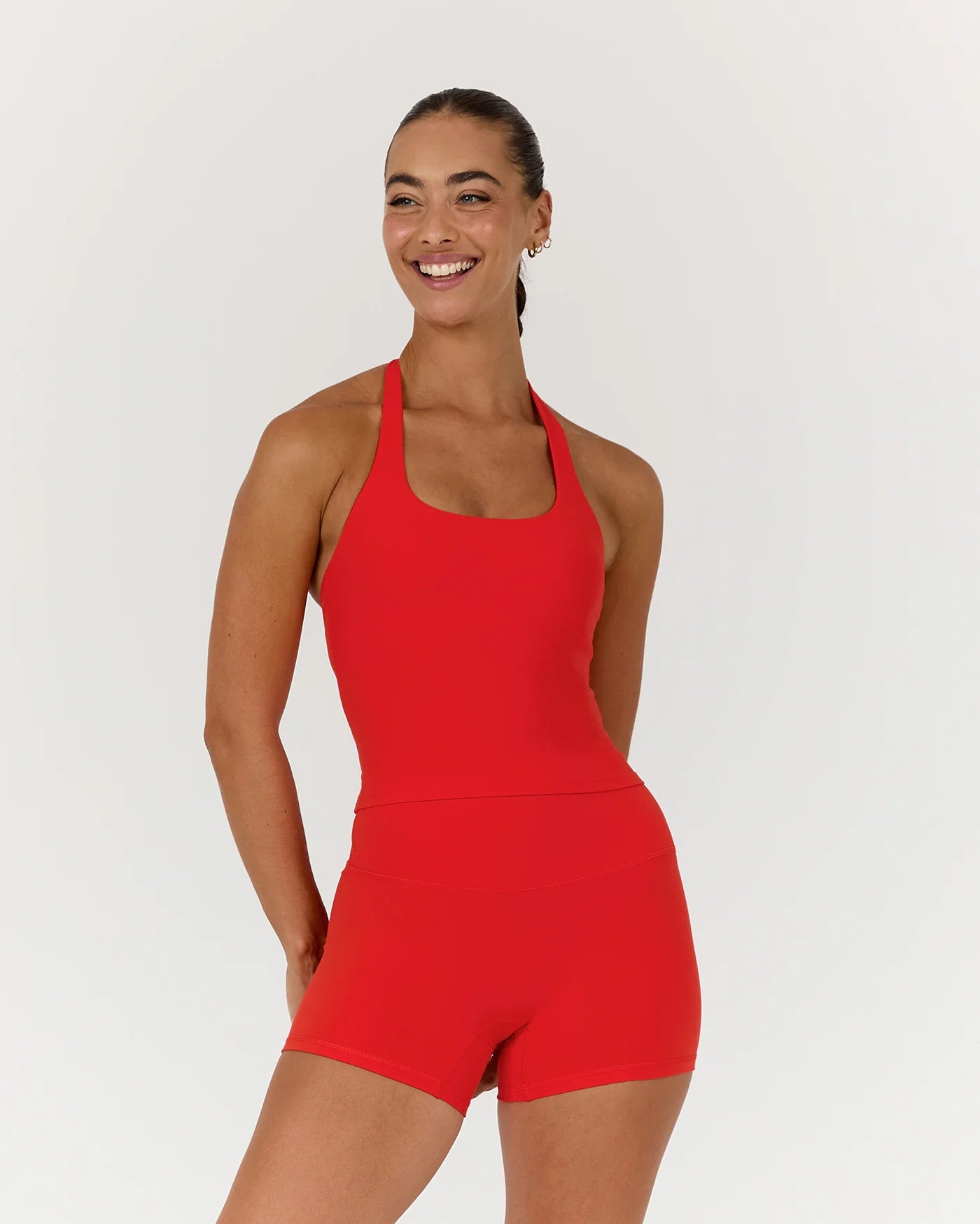 Introducing the Luxe Hally Top, where style meets performance. With a halter strap and round neckline, this fitted top offers a sleek look.